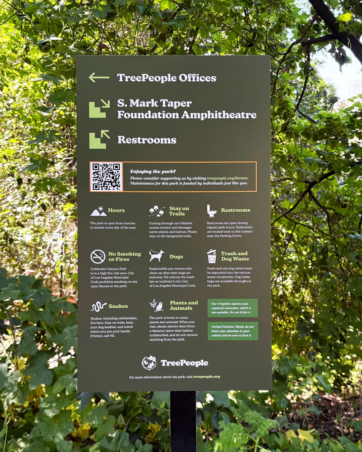 These interpretative signs aim to educate about Coldwater Canyon Park’s landmarks, how they correlate to the organization’s mission and how park goers can apply these concepts in their own homes.