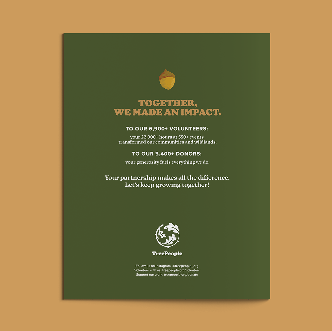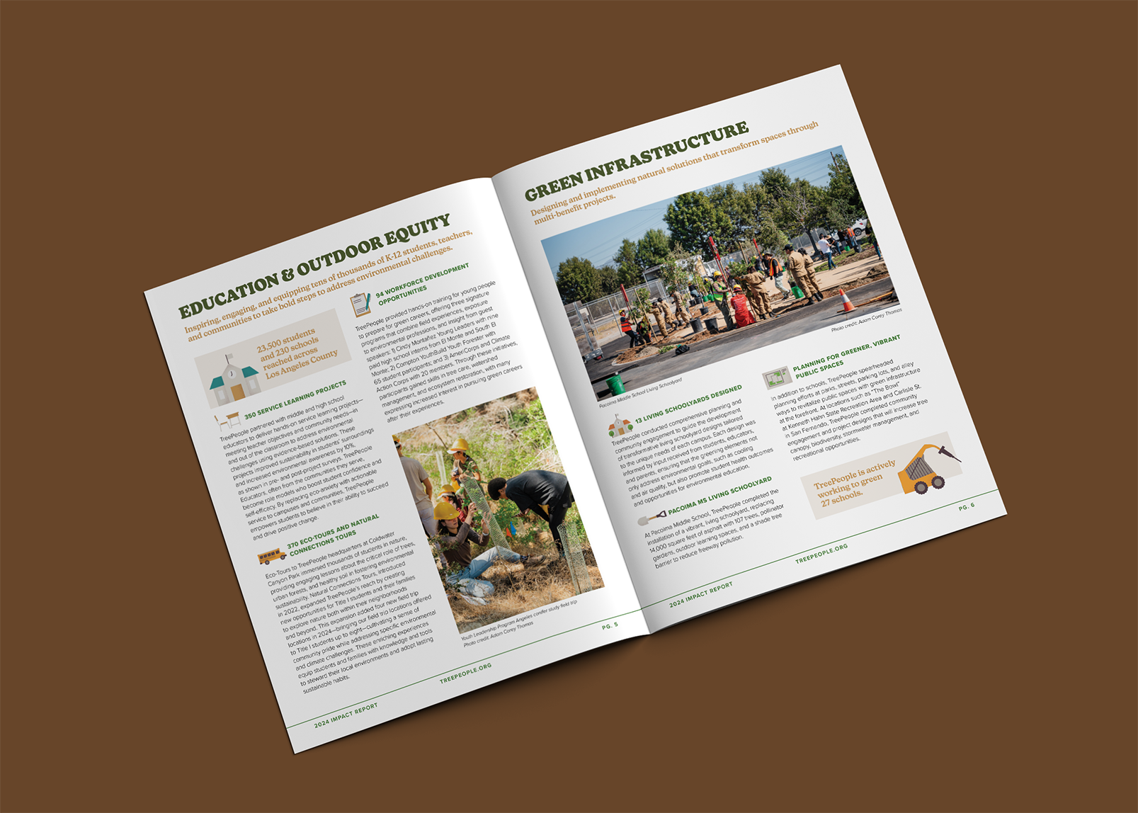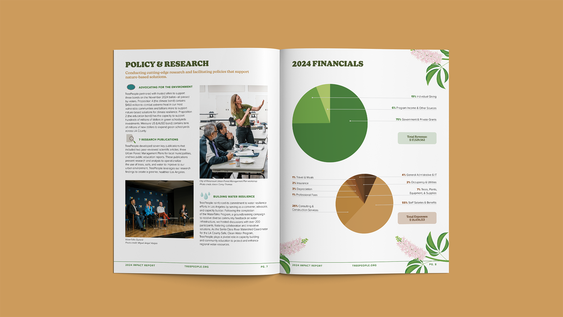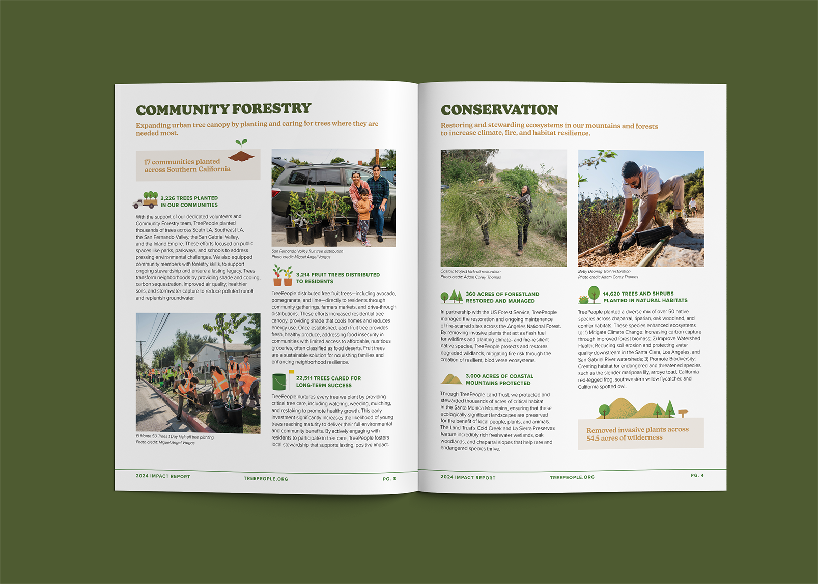 This is the very first impact report I designed for TreePeople. With this being a report, I had to put extra attention to typography while making sure that it’s presented in a way that’s approachable and not too overwhelming. I sprinkled in some illustrations to give it a friendlier vibe and to highlight impact numbers for people who are just taking a glimpse of the report without reading everything. I’m extremely proud of how this project turned out as this gave me the opportunity to showcase both my editorial and illustration skills.