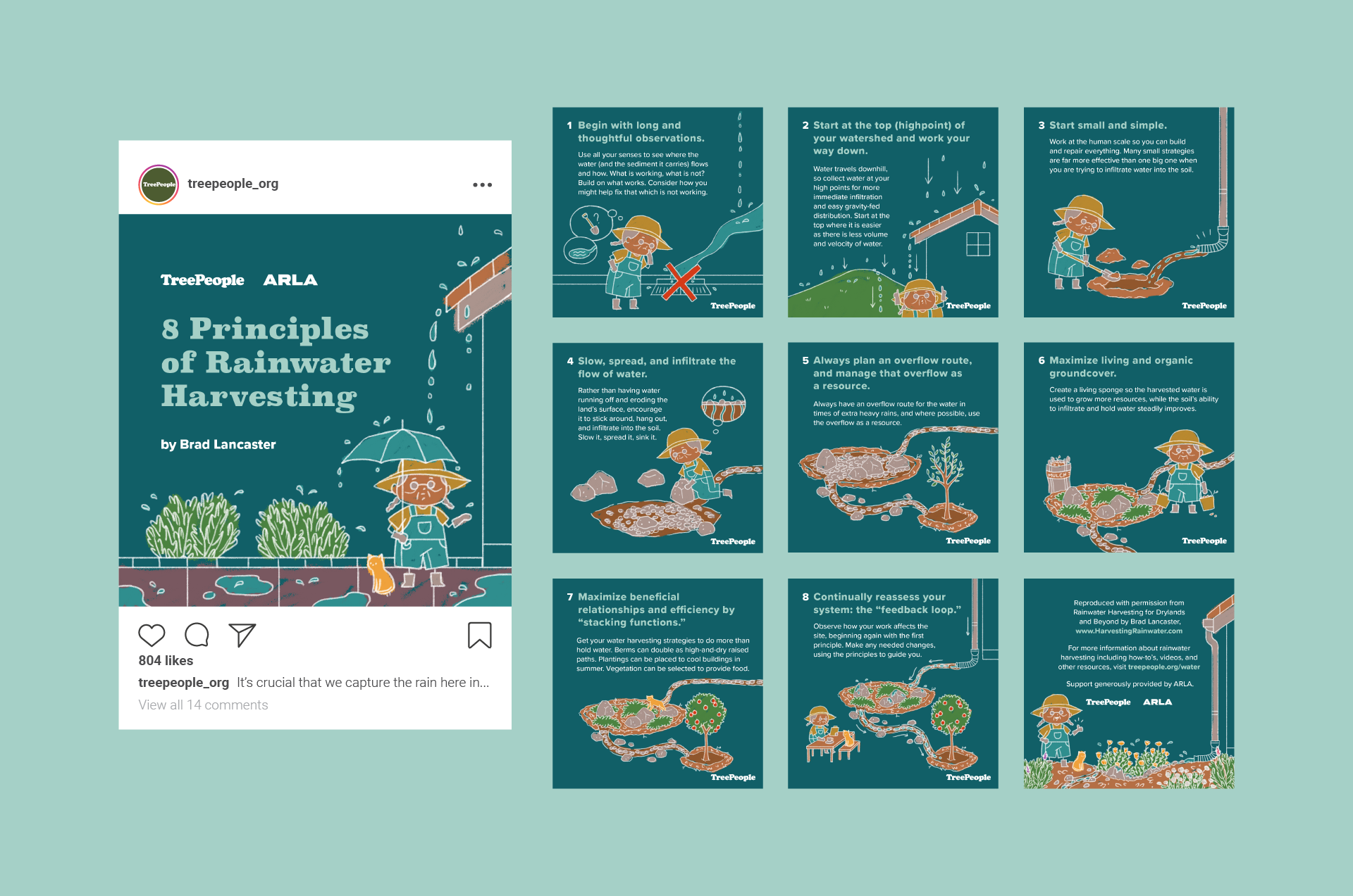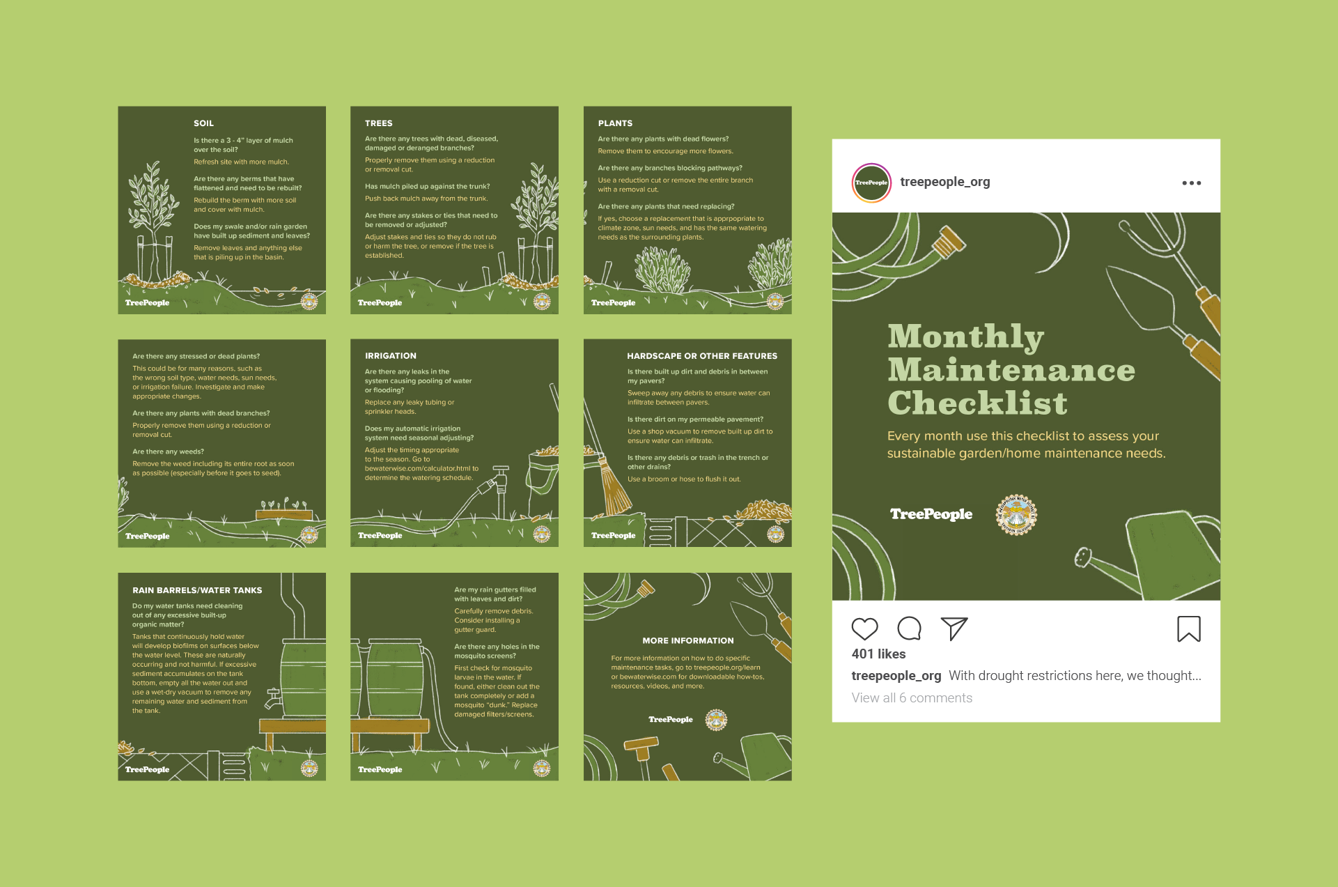 The most challenging part in making these guides is making sure that the illustrations are accurate in depicting information. While the text is very clear in giving instructions, I wanted the visuals to make it more accessible to TreePeople's general audience that may not be too familiar with lawn maintenance. I was able to achieve this by collaborating closely with coworkers that are more knowledgeable in the subject matter.